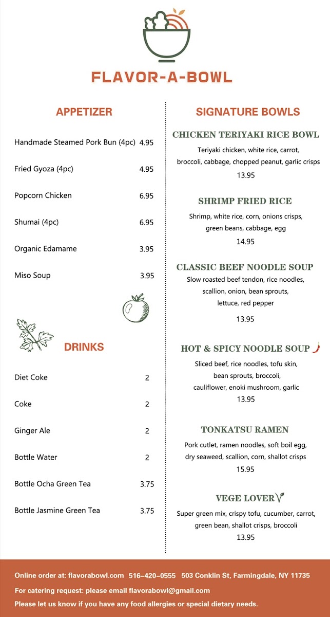 If you're looking for a bowl of ramen that hits all the right notes, Flavor-A-Bowl (Oh! Ramen) Menu is where your taste buds are in for a treat. Located at 503 Conklin St, Farmingdale, NY, this spot brings the heart of Japan to your table with each carefully crafted dish. From rich, savory broths to perfectly cooked noodles, every bite promises an authentic experience. Whether you're craving a traditional tonkotsu or a spicy miso ramen, there's something here for every kind of ramen lover.